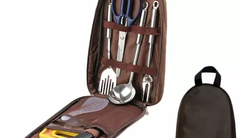 Ensemble d’ustensiles de cuisine pour le camping – Kit complet avec sac de transport