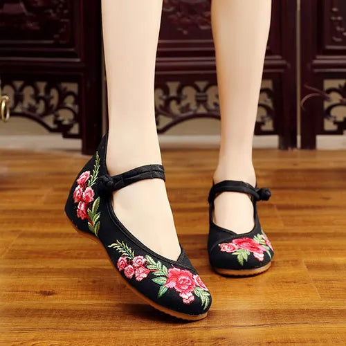 Nos ballerines en toile brodée vintage sont conçues pour épouser parfaitement la forme de vos pieds. Grâce à leur matériau léger et respirant, vous ressentirez une sensation de légèreté et de liberté à chaque pas. Que vous les portiez pour une promenade en ville ou une journée de boulot, le confort est au rendez-vous !