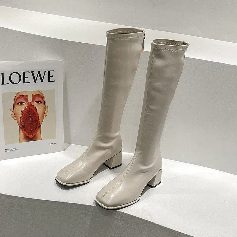 Ces bottes hautes à talon féminines sont conçues pour apporter une touche de sophistication à votre garde-robe. Avec leur silhouette slim et leur finition en cuir souple, elles épousent parfaitement la forme de vos jambes. Qu’il s’agisse d’une sortie entre amis ou d’une journée au bureau, elles compléteront avec brio votre look tout en attirant tous les regards.