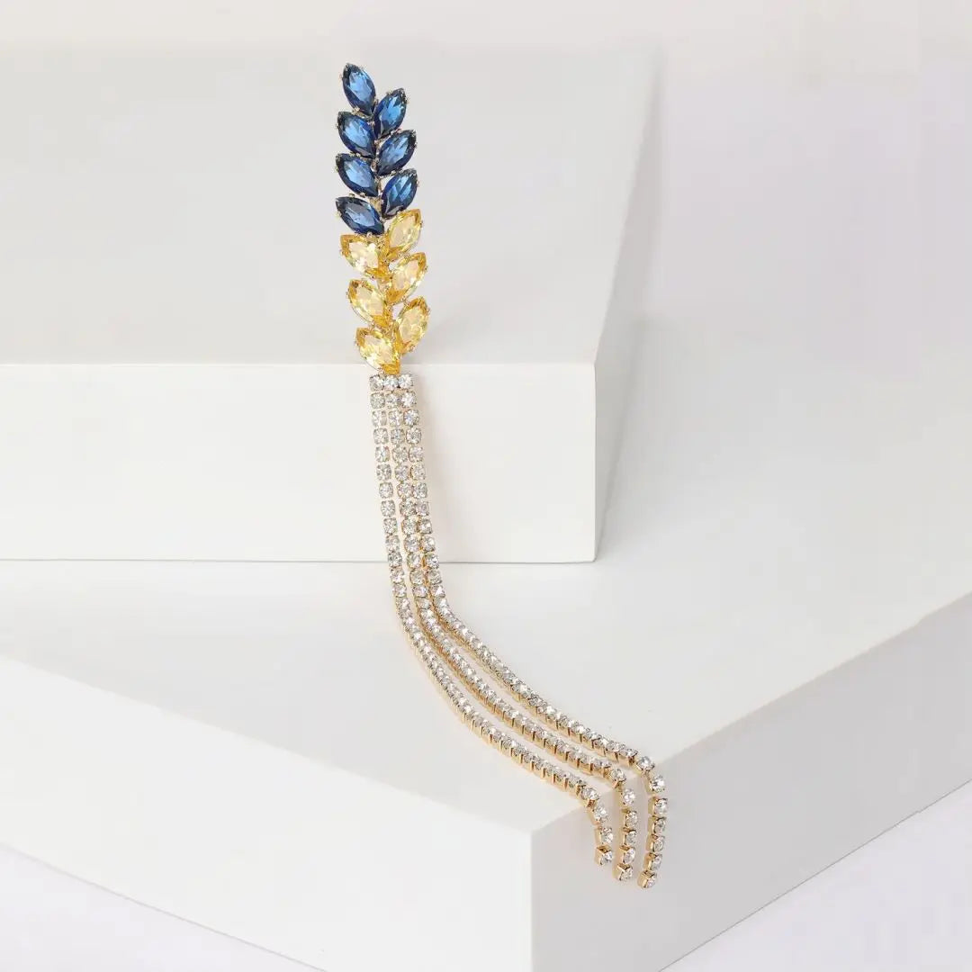 Ajoutez une touche de glamour à votre tenue avec la broche de luxe Dmari, embellie de strass étincelants et de délicates franges. Idéale pour scintiller à chaque occasion !