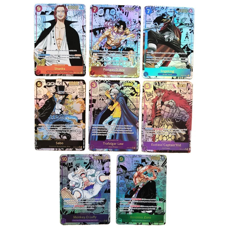 Nos cartes de collection sont des répliques de haute qualité, conçues avec soin pour refléter les détails originaux de l’univers One Piece. Que vous soyez un collectionneur ou un joueur, vous apprécierez la finesse et le rendu des illustrations. Chaque carte raconte une histoire, et cela ne fera qu’enrichir votre expérience de jeu.