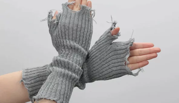 Gants tricotés déchirés avec manches : confort, style punk et liberté de mouvement. Amitiés à vos mains!
