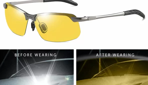 Lunettes photochromiques polarisées pour une vision claire et sécurisée en conduite. Idéales jour et nuit.