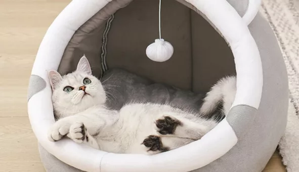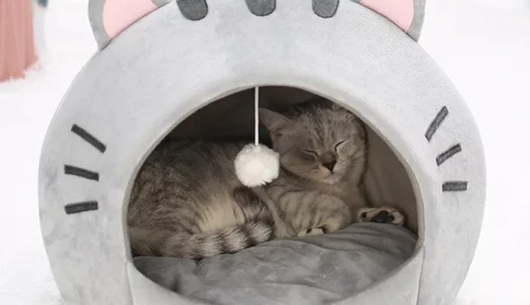 Maison douillette pour chats offrant une chaleur et un confort enveloppants. Idéale pour le repos et la relaxa...