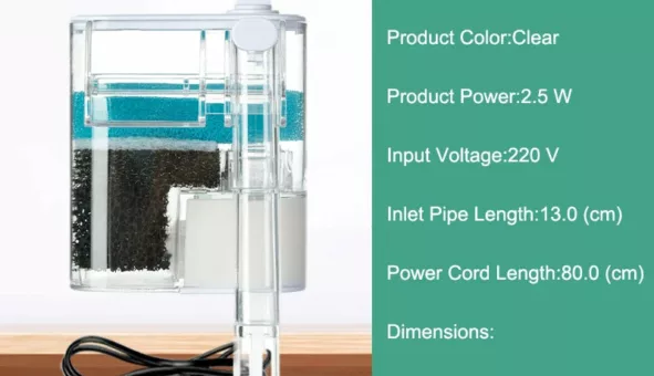 Filtre à eau pour terrarium avec pompe à oxygène pour une eau claire et oxygénée. Facilite l'entretien et assure une filtration efficace.