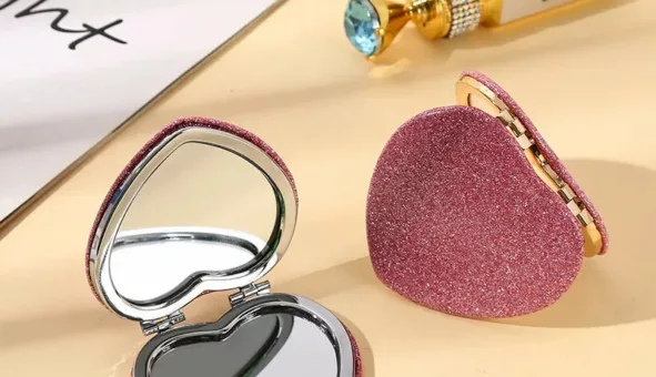 Miroir de maquillage portable en cœur, pratique et double face. L'accessoire idéal pour des retouches en déplacement !