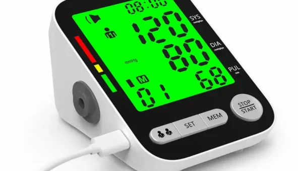 Tensiomètre numérique à bras avec voix anglaise : précision, confort et suivi de santé simplifié.