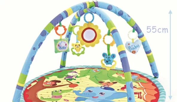 Cadre d'éveil éducatif avec tapis moelleux pour stimuler l'éveil et la motricité de votre bébé. Idéal comme cadeau.