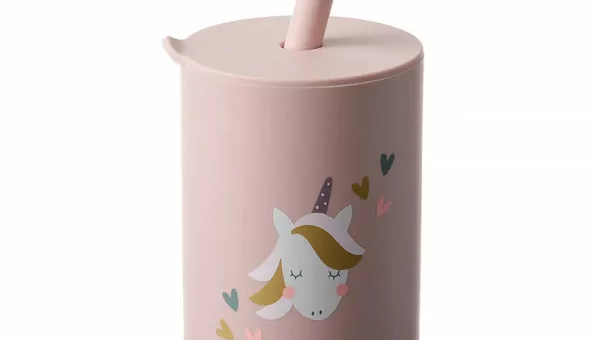 Gobelet silicone pour bébé sans BPA avec paille et conteneur à collations - parfait pour le goûter !
