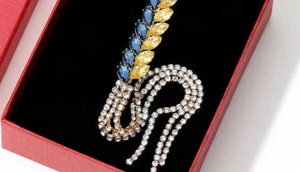 Découvrez la broche Épi de Blé, un accessoire tendance et élégant avec des strass colorés. Idéal pour tous les styles !