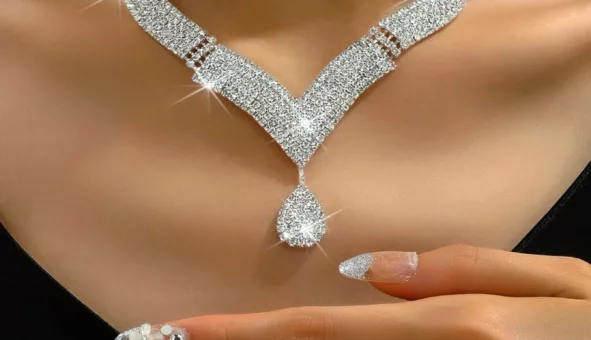 Ensemble de Bijoux de Mariage Élégants : Colliers et Boucles d’Oreilles avec Strass en Goutte d’Eau