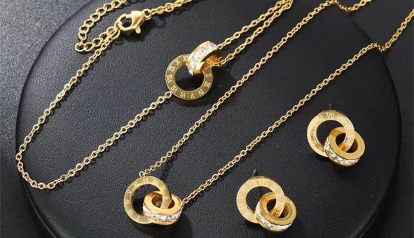 Offrez-vous cet ensemble de bijoux en acier titane, un mélange parfait d'élégance et de durabilité pour chaque femme.