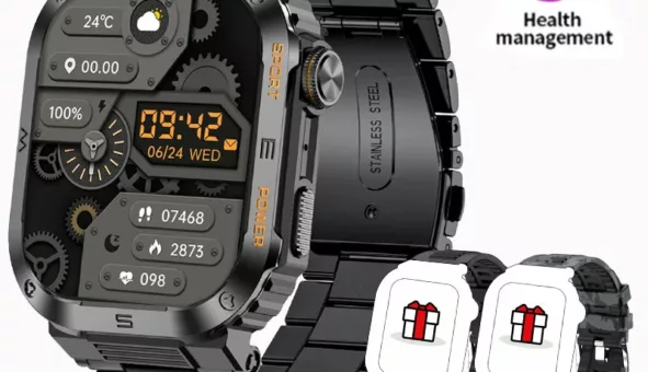 Découvrez la montre militaire imperméable IP68, robuste et connectée, idéale pour les aventuriers modernes.