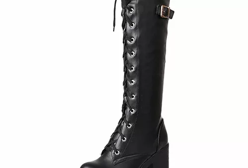 Découvrez les bottes hautes à talon carré en cuir PU, élégantes et confortables jusqu'à la taille 43 !