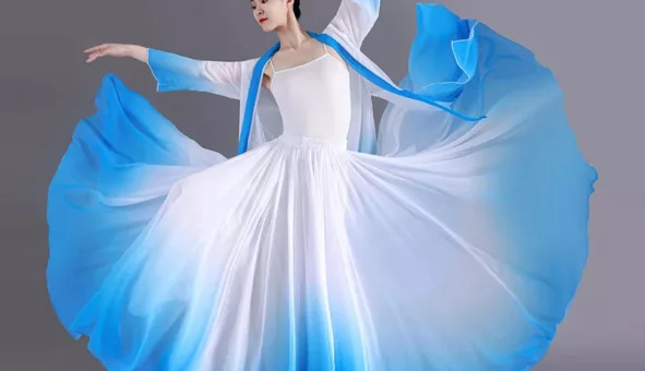Offrez-vous cette jupe de danse à dégradé pour élever vos performances en danse chinoise avec style et confort.