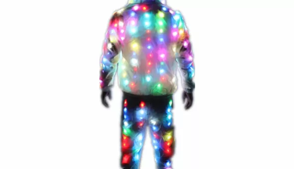 Costume lumineux LED coloré pour couple, idéal pour vos soirées de danse ! Confort et éclat garantis.