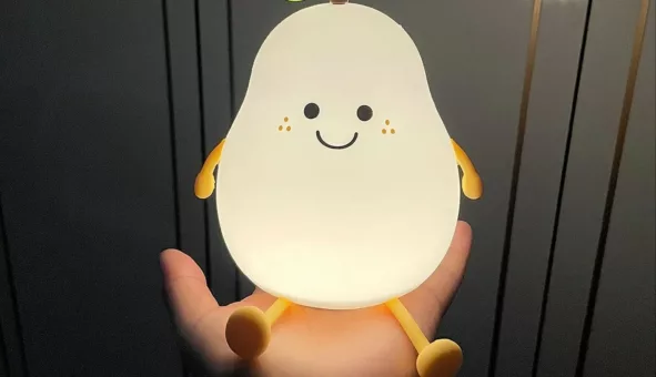 Lampe de nuit en silicone poire pour enfants : design ludique et éclairage apaisant, recharge USB pratique.