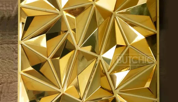 Élégants panneaux 3D en métal plaqué or, parfaits pour une déco chic et durable. Installez-les facilement !