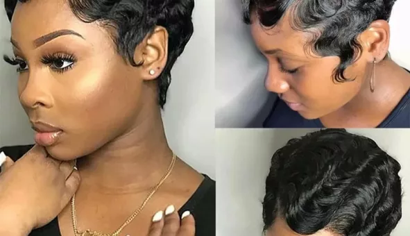Perruque courte en cheveux humains avec coupe pixie et ondulations naturelles