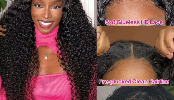 Perruque bouclée sans colle, prête à porter pour un look naturel et glamour. Confort et style en un clin d'œil.
