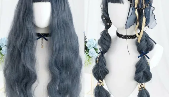 Perruque ondulée bleu haze, idéale pour un style unique et confortable. Parfaite pour le cosplay et les sorties !