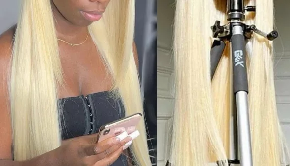 Découvrez la Perruque Lace Front Tressée, en blonde 613. Élégance et confort, pour un style irrésistible !