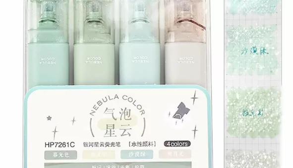 Lot de 4 surligneurs pailletés - Couleurs nébuleuses flexibles pour planificateurs, journaux et notes. Illuminez votre travail avec ces surligneurs fu...