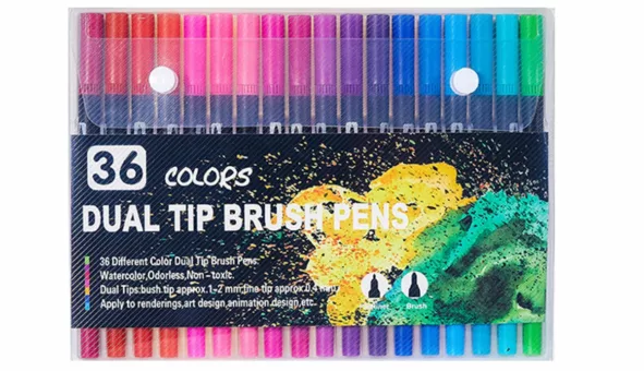 Stylos à Marqueur Double-Embout pour Dessin Artistique - 12/24/36/48 Couleurs | Feutres de Peinture à Pointe Fine et Pinceau. Des couleurs éclatantes,...