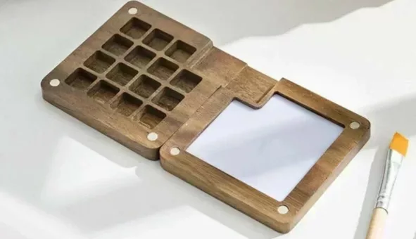 Palette Aquarelle en Bois pour Artistes - Organisez vos couleurs avec style et aisance lors de vos voyages artistiques.