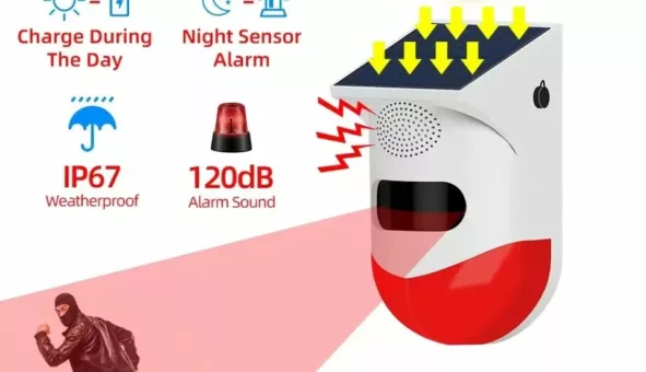 Détecteur de mouvement Tuya avec panneau solaire, contrôle à distance et sirène intégrée pour une sécurité optimale.
