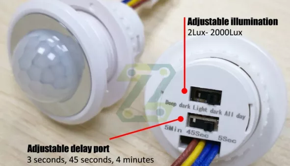 Interrupteur détecteur de mouvement infrarouge avec délai ajustable, idéal pour un éclairage intelligent et écoénergétique.