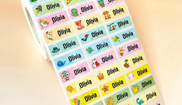 Étiquettes autocollantes personnalisées, imperméables, idéales pour bébés. Organisation facile, durabilité et design unique sur LePrixduMarche.com.