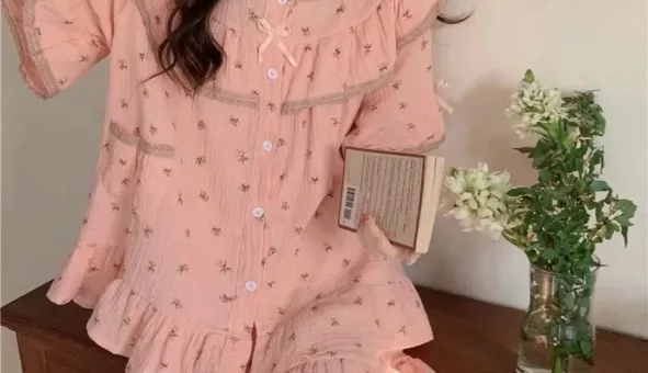 Pyjama d'été en coton pour femmes, léger et stylé. Idéal pour des nuits confortables et élégantes à la maison.