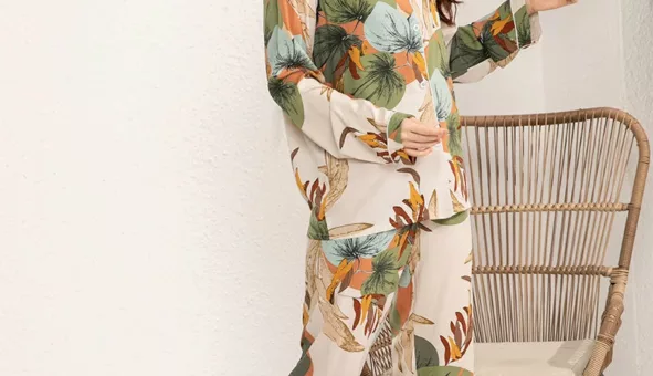 Découvrez l'ensemble pyjama kimono cardigan Elizabeth Duck, confort et style pour des nuits d'été parfaites.