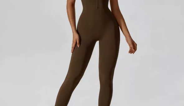 Combinaison de Yoga Femme Manches Courtes avec Zip – Style et Performance