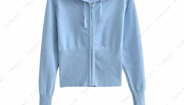 Ensemble tricoté avec veste à capuche et pantalon évasé pour un style élégant et confortable en toutes occasions.