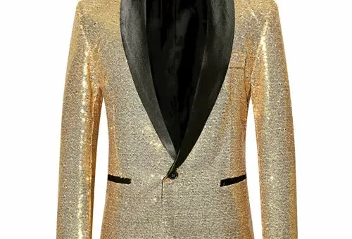 Blazer à sequins or, idéal pour soirées élégantes et performances scéniques. Style unique et confort garanti.