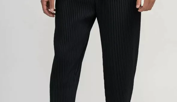 Découvrez le pantalon droit plissé Miyake, alliant confort et style pour une garde-robe moderne.