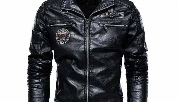 Veste de moto en simili cuir pour hommes. Élégance, confort et protection, idéale pour vos trajets quotidiens.