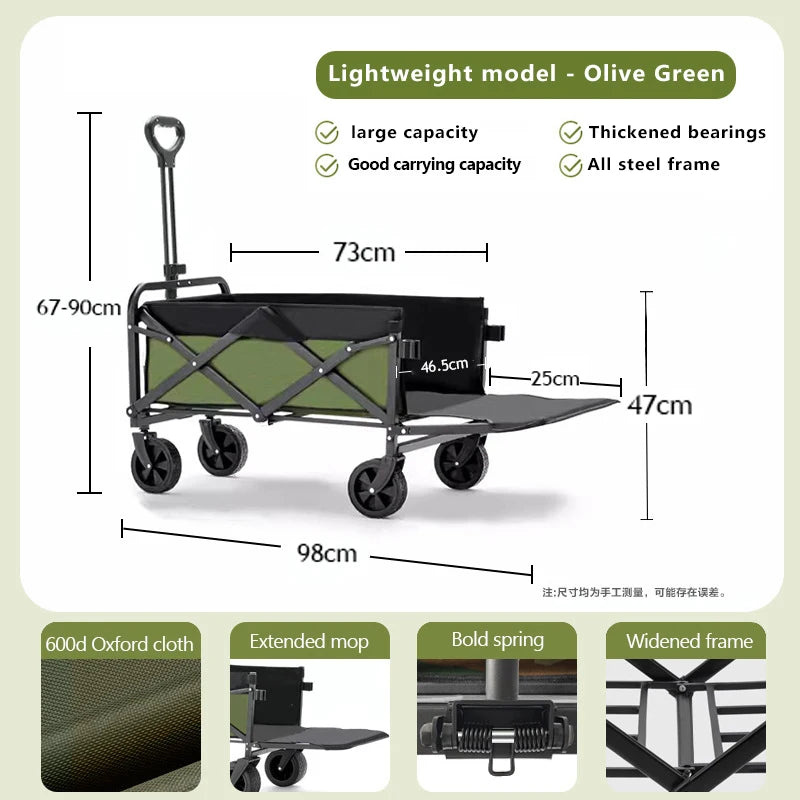 Le chariot pliant à roulettes se distingue par son design astucieux. Il se plie en quelques secondes, ce qui le rend parfait pour les campings, les sorties à la plage ou même les courses au marché. Une fois plié, il se glisse sans peine dans votre coffre, vous laissant plus d’espace pour vos autres essentiels.