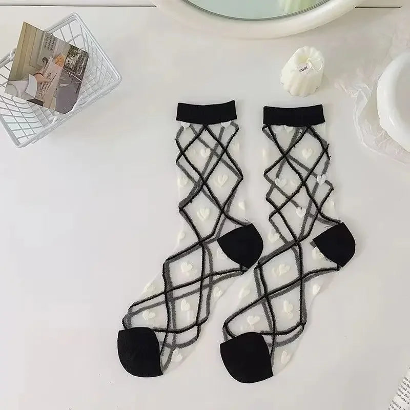 Ces chaussettes longues sexy se distinguent par leur motif de cœur délicat en dentelle noire. Que vous les portiez avec une jupe courte ou sous un short, elles ajoutent une note de romantisme et de mystère à votre look. Ce design charmant est parfait pour faire une déclaration audacieuse lors de vos sorties.