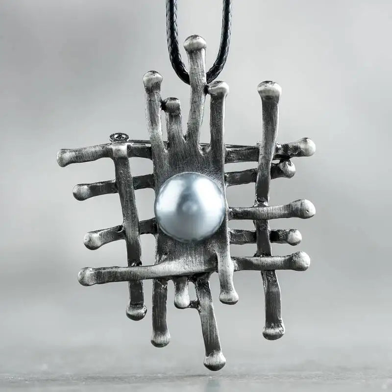 Découvrez notre collier à chaîne longue vintage, un accessoire de mode fait main qui sublimera toutes vos tenues avec ses perles grises éclatantes et son pendentif géométrique unique.