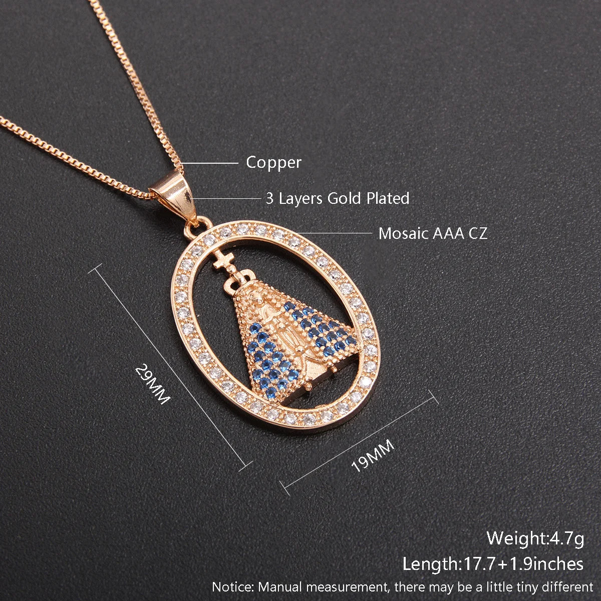 En portant ce collier, vous affichez fièrement votre dévotion à la Vierge de Nossa Senhora. Son symbole chargé de sens apporte une dimension spirituelle à votre look, parfait pour des événements religieux ou simplement pour illuminer votre quotidien. Ce bijou est un moyen subtil de se reconnecter à ses croyances tout en étant tendance.