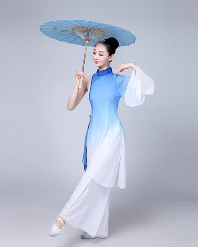 Ce costume de danse Yangko arbore des motifs traditionnels et des couleurs vives, permettant à chacune de se sentir au cœur de la culture chinoise. Chaque détail a été pensé pour refléter l’essence de cette danse folklorique, offrant un look à la fois authentique et moderne. Avec ce costume, vous serez prête à éblouir le public !