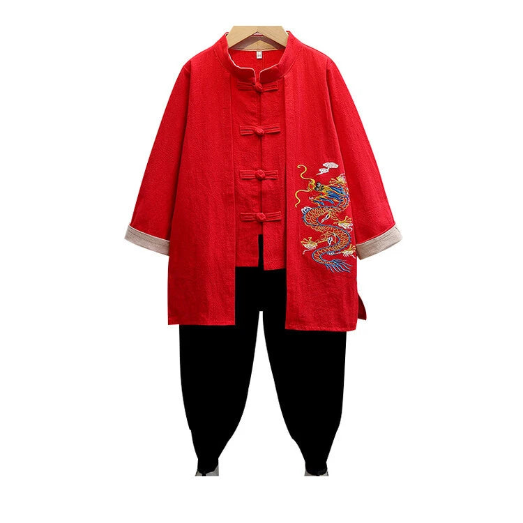 Découvrez ce magnifique costume traditionnel chinois pour enfant, idéal pour célébrer le Nouvel An ou toute autre occasion festive ! Avec sa broderie de dragon, il allie élégance et authenticité.