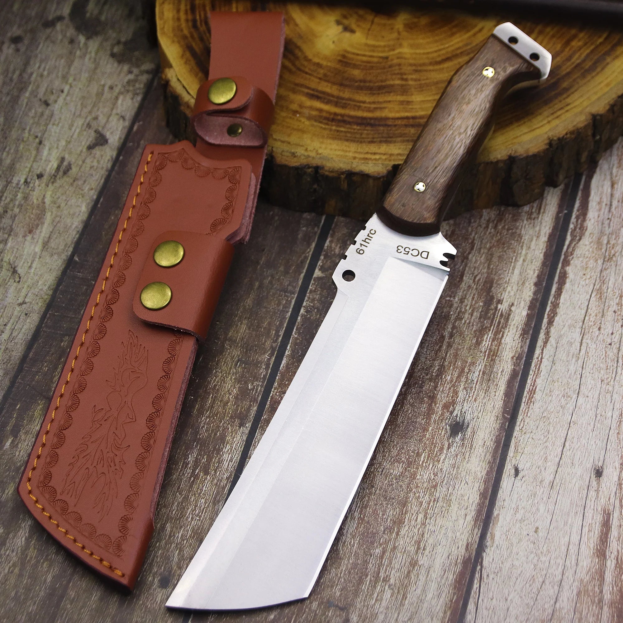 Le couteau de bois multitâche est conçu avec une lame en acier DC53, réputé pour sa résistance. Cette spécificité permet une coupe précise et efficace, que ce soit pour préparer un feu de camp, sculpter ou même pour des travaux agricoles. Sa longueur de 13,5 pouces offre une prise en main confortable pour un usage prolongé.