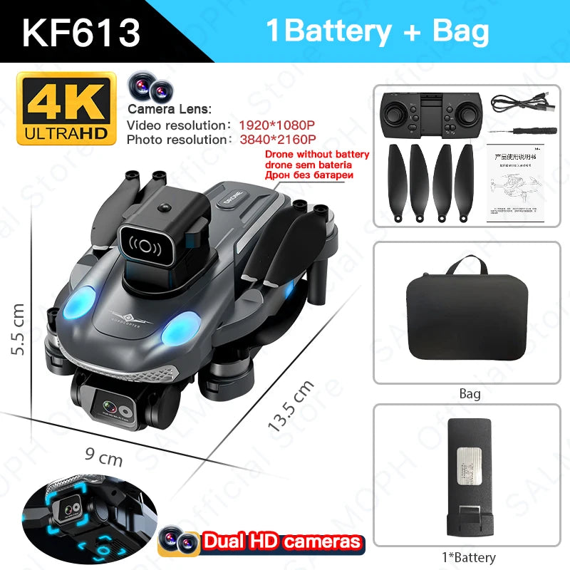 Le drone KF613 est doté d’une caméra 4K, offrant des images d’une clarté exceptionnelle. Que ce soit pour immortaliser un paysage ou réaliser des vidéos spectaculaires, chaque pixel est restitué avec une précision incroyable. Vous allez pouvoir réaliser des vidéos dignes de professionnels, et capturer des moments magiques en un clin d’œil.