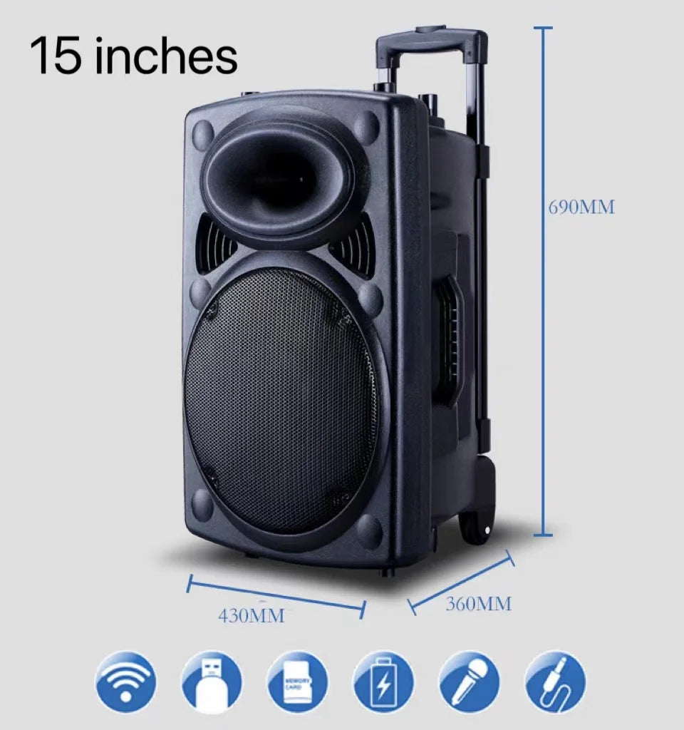 Découvrez l’enceinte Bluetooth portable de 15 pouces, idéale pour toutes vos soirées, karaokés et moments de fête. Emportez vos rythmes préférés partout où vous allez !