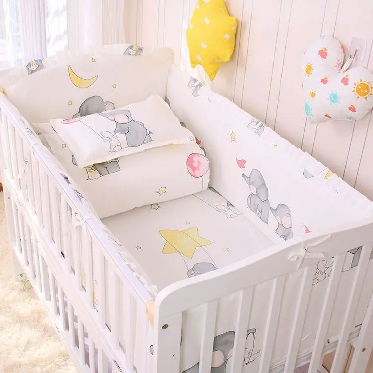 L’ensemble de literie pour bébé avec son thème éléphant apporte une touche joyeuse et ludique à n’importe quelle chambre d’enfant. Les motifs colorés éveillent la curiosité de votre petit tout en s’intégrant harmonieusement dans votre décoration. Ce joli ensemble ne se contente pas d’embellir l’espace, il rend aussi le lit attrayant pour le bébé.