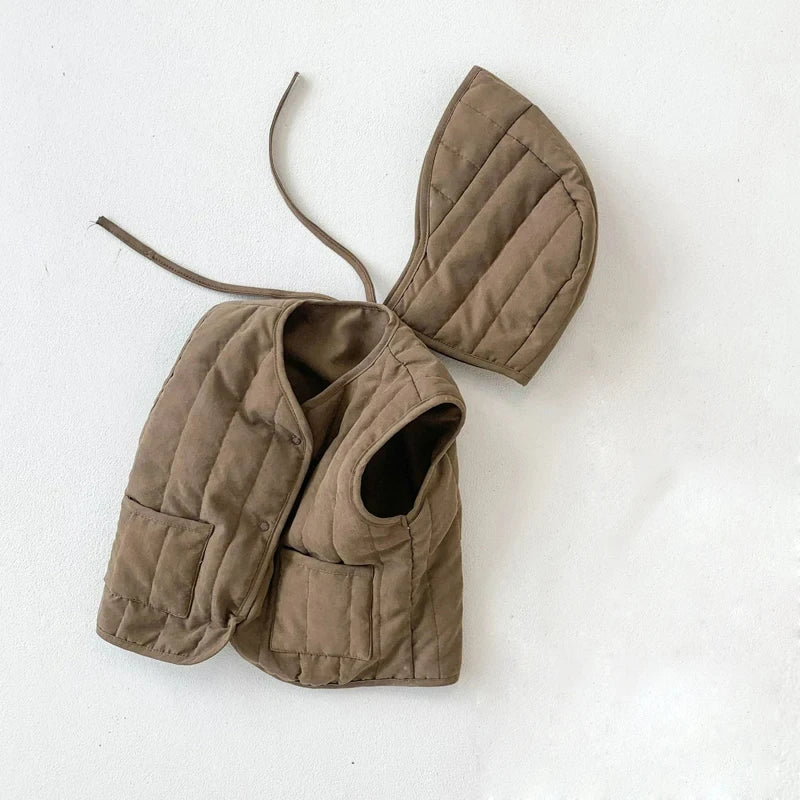 - Ensemble 2 pièces comprenant un gilet et un bonnet assorti.